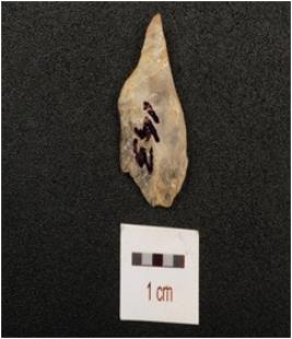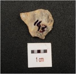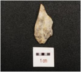 | Description / विवरण | A quartz scraper with prepared platform, use wear marks on working edge and translucent. |