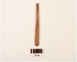 | Description / विवरण | A fragment of bone needle with eye, broken end, flat from top, round surface, polished in brown colour. |
