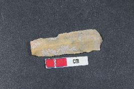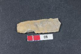 | Description / विवरण | Chert blade with bulb of percussion on the ventral side. Two dorsal ridges and retouching are present. |
