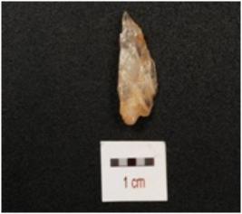 | Description / विवरण | Quartz point smooth surface with a mid ridge on dorsal side, pointed along at distal end, use wear marks on working edge and triangular in section. |