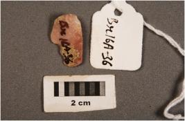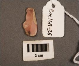 | Description / विवरण | A chert blade, mid-ridge on dorsal side, use- wear marks along the cutting edges. |
