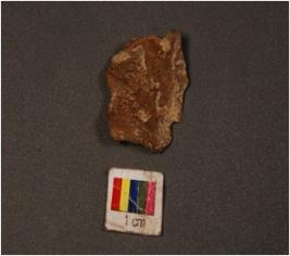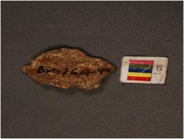 | Description / विवरण | Side scraper on flake, lateral cutting edges. Diffused bulb on ventral, prepared platform on prximal end and use wear marks on cutting edge. |