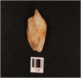 | Description / विवरण | A quartz scraper with prepared platform, bulb on ventral and use wear marks on working edge. |