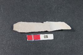 | Description / विवरण | Chert blade with bulb of percussion on the ventral side. Two dorsal ridges are present. |