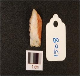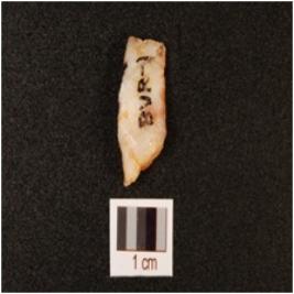 | Description / विवरण | A quartz scraper with use wear marks on working edge, smooth and cortex on surface. |