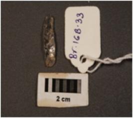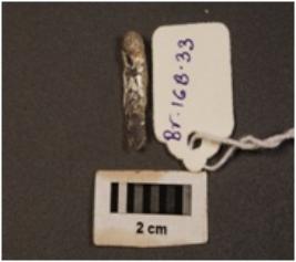 | Description / विवरण | Parallel sided microlith blade, use wear marks on cutting edges and prominent mid ridge on dorsal. Triangular in section. |