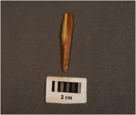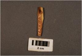 | Description / विवरण | A chert blade with ridge on the dorsal side, triangular in section and diffused bulb on ventral side. |