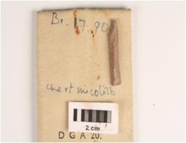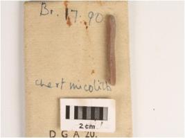 | Description / विवरण | Parallel ridge chert blade with sharp cutting edges, a prominent mid ridge on dorsal surface, triangular in section, diffused bulb on ventral surface. |