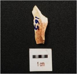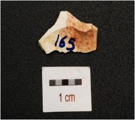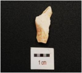 | Description / विवरण | Fragment of chert blade with prominent mid ridge, triangular section and use wear marks on working edge. |