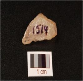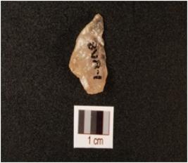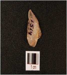 | Description / विवरण | A quartz scraper with use wear marks on working edge and flake scars on dorsal. |