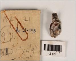 | Description / विवरण | A chalcedony blade with use wear marks on cutting edges, a ridge on doesal surface, diffused bulb on proximal end, triangular in section cortex visible. |