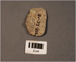 | Description / विवरण | Quartz stone side- scraper with diffused bulb on ventral, prepared platform and use wear marks on cutting edges. |
