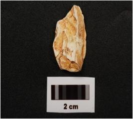 | Description / विवरण | A chert flake with flake scars on dorsal, prepared platform and diffused bulb on ventral. |