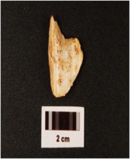 | Description / विवरण | Chert flake, irregular shape and blunte edges. |