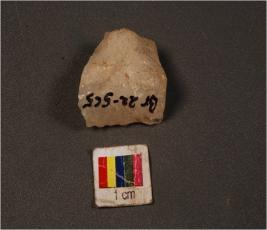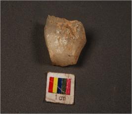 | Description / विवरण | Microlith modified quartz crystal stone object, cortex and flake scars surface. |