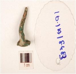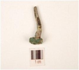 | Description / विवरण | Copper nail with a circular head shape and corroded surface. |