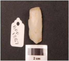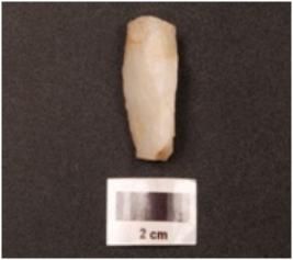 | Description / विवरण | A core made on quartz with flake scars on the surface, smooth surface, broken at one end. |