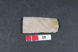 | Description / विवरण | Chert blade with bulb of percussion on the ventral side. Two dorsal ridges and retouching are presents. |