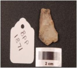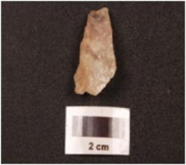 | Description / विवरण | A scrapper made on quartz with flake scars on the dorsal surface, irregular along the edges. |
