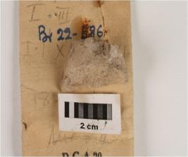| Description / विवरण | A quartz flake with a ridge, flake scars on surface, uneven surface. |