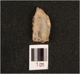 | Description / विवरण | A quartz scraper with use wear marks along cutting edges, prominent bulb on ventral surface and flake scars on dorsal surface. |