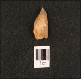 | Description / विवरण | A quartz flake with pointed distal end, flake scars on surface and cortex also visible. |