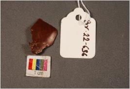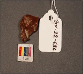 | Description / विवरण | Microlith modified chert stone object. Flake scars on surface and prominent bulb on ventral. |