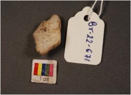 | Description / विवरण | Microlith modified quartz stone object. Flake scars on surface. |