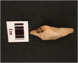 | Description / विवरण | A quartz flake, use wear marks on cutting edges and flake scars on surface. |