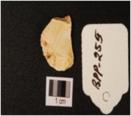 | Description / विवरण | Chert flake, irregular shape and use wear mark on the cutting edges. |
