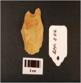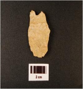 | Description / विवरण | A chert, side scraper bulb on percussion on the ventral side, one blade scars, use wear mark on the cutting edges and irregular shape. |