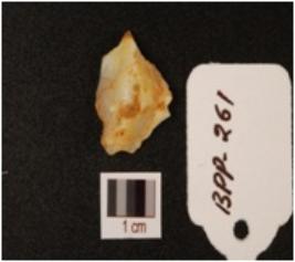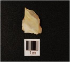 | Description / विवरण | Chert flake, irregular shape, pointed distal end, and posterior end broad. |