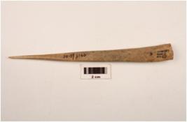 | Description / विवरण | A arrow head made on bone pointed at one end and thick at other well polished and smooth surface. |