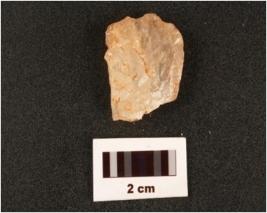 | Description / विवरण | A quartz scraper cortex visible on dorsal surface, use wear marks on cutting edges and flake scars on dorsal surface. |