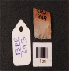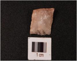 | Description / विवरण | A quartz end struck flake with prepared platform cortex on dorsal sides and irr-regular shaped. |
