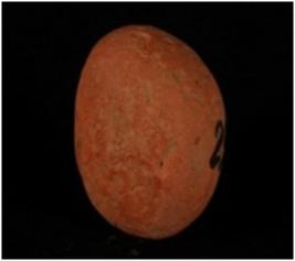 | Description / विवरण | Handmade terracotta sling ball, round in shape, rough surface and wash treatment was given in red colour. |
