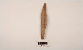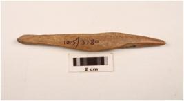 | Description / विवरण | A modified long bone point polished chipped off proximal end intact distal end unevenly prepared surface. |