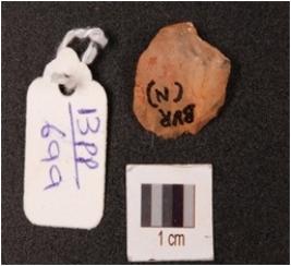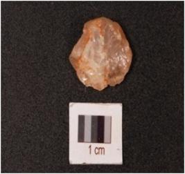| Description / विवरण | Fragment of a sides scraper on flake with cortex on dorsal sides and use wear marks along the cutting edges. |