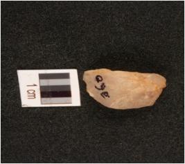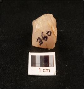 | Description / विवरण | A quartz core with four blade scars on surface and prepared platform. |