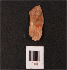 | Description / विवरण | A quartz flake, cortex on dorsal sides, irr-regular shaped and use wear marks along the cutting edges. |