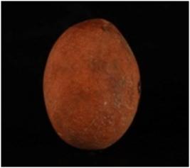 | Description / विवरण | Handmade terracotta sling ball, round in shape, surface incised rough and wash treatment incised given in red colour. |