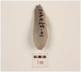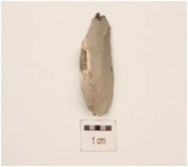| Description / विवरण | A blade made on chert, use-wear marks on working edge, ridge on dorsal side and diffused bulb on ventral side. |