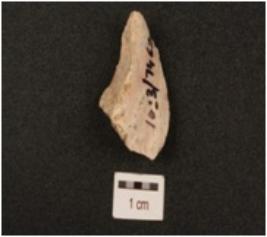 | Description / विवरण | A flake made on chert, flake scars on surface, use-wear marks along cutting edge and smooth surface. |