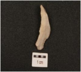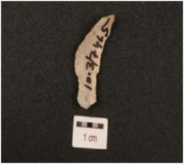 | Description / विवरण | A blade made on chert, use-wear marks on working edge, flake scars on dorsal side, smooth surface and prominent bulb on ventral side. |