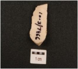 | Description / विवरण | A blade made on chert, partly broken from one side, use-wear marks on working edges, ridges on dorsal side and trapezoidal section. |