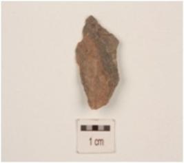 | Description / विवरण | A blade made on chert, use-wear marks on working edge, prominent bulb on ventral side, smooth surface and flake scars on one side. |
