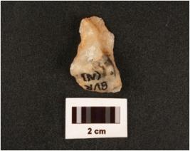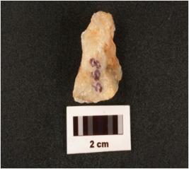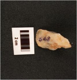 | Description / विवरण | Quartz flake, with pointed end, uneven surface, three flake scars on surface. |