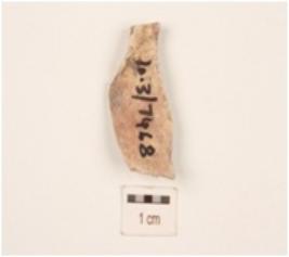 | Description / विवरण | A blade made on chert with flade scars on dorsal surface, use-wear marks on working edges and triangular in section. |