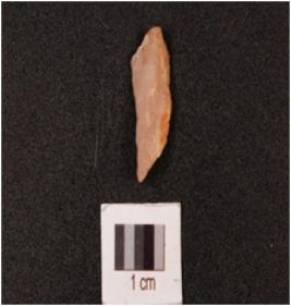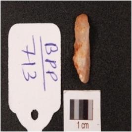 | Description / विवरण | A quartz flake, irr-regular shaped and ridge at one side. |