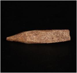 | Description / विवरण | Bone point with flattened surface and tapered on one end, Tip of one side is pointed, broken from another side, rectangular in section and polished surface. |